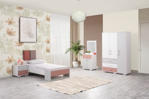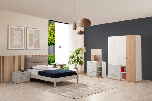 Youth bedrooms are a product group offering a wide variety of functional options. Design-wise, these youth bedroom sets are ideal for families looking to design a room for their children. Youth bedroom sets offer all the essentials a teenager might need. They typically include a bed, wardrobe, and desk. Additionally, bookcases, nightstands, and dressers can be added.